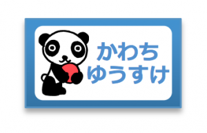 パンダを左に、名前を右に移動させると、しっくり来るバランスになりました。同時に、名前の部分も書き換えます。文字数が変わると文字が枠からはみ出たりしますので、サイズを適宜調整して、バランスよく枠内に収めます。
