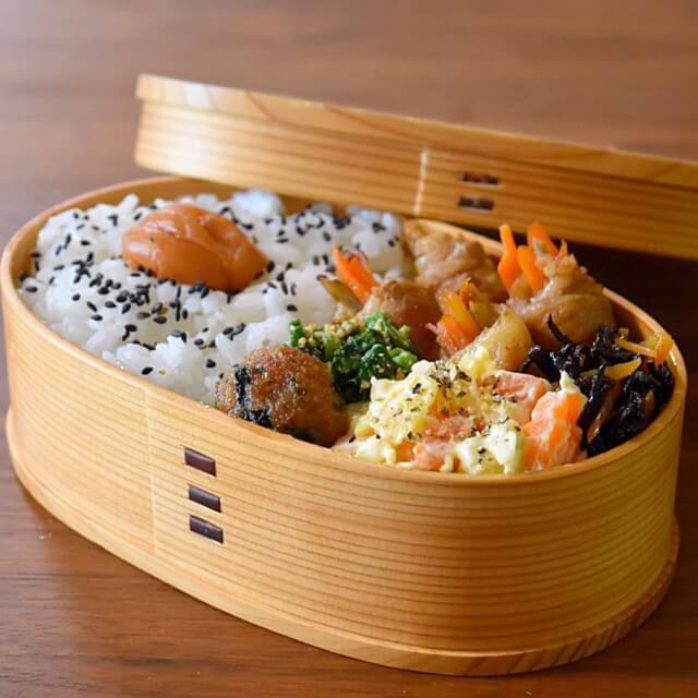 そのわっぱ弁当箱の魅力とは、蓋を開けると杉のいい香りがし、木肌がご飯の余分な水分を吸いとってくれ、ご飯の旨みを引き出すと言われています。おかずが少ない時でも、なんだか見た目が美味しそうに見えるところもポイント。