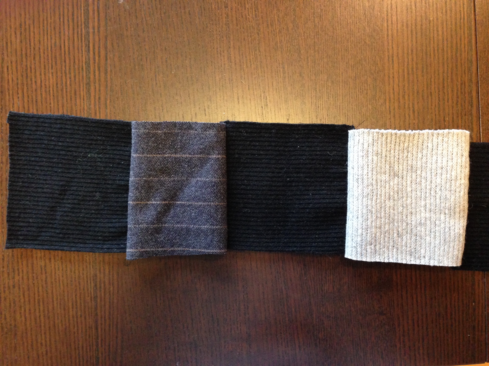 大きさや作りたい柄にあわせてサイズや布の種類は変えてもいいと思います。それを柄を考えながらミシンで縫い合わせていくだけです。