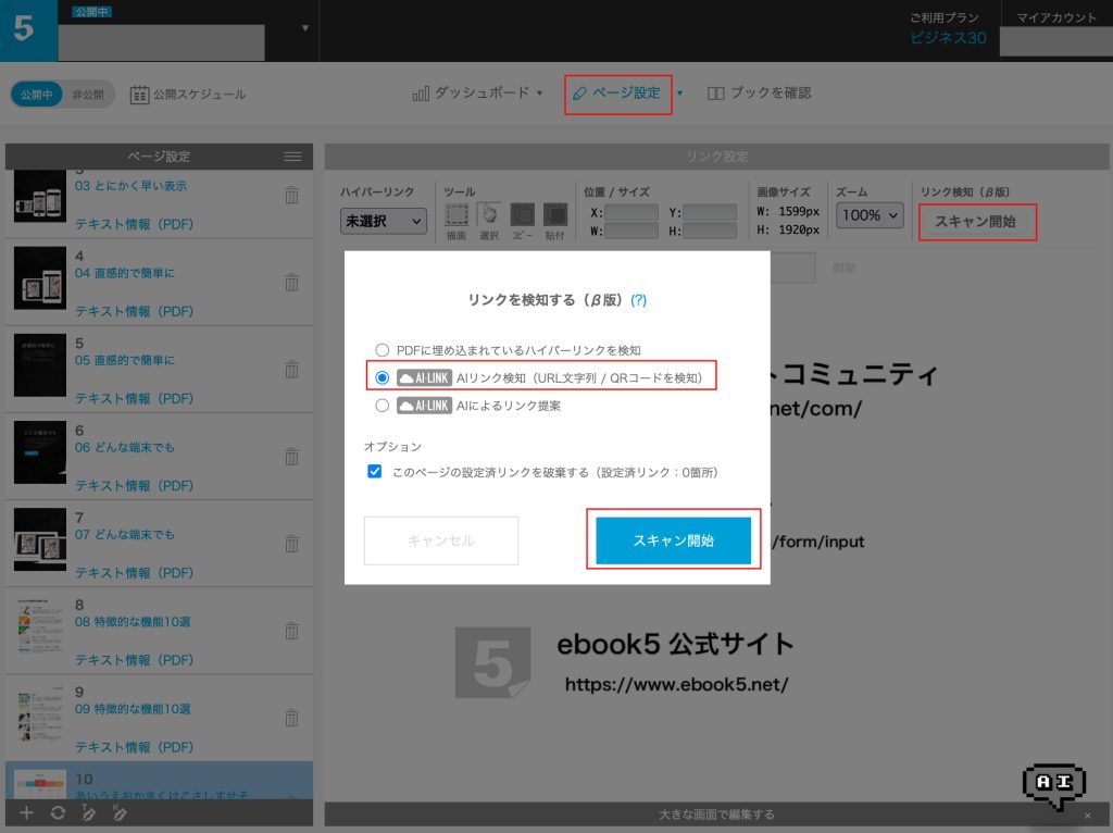 作成されたブック(画像)内の「URL文字列」や「メールアドレス」はAIが検知「QRコード」は専用プログラムがリンクを検知し、ebook5へ取り込む機能になります。