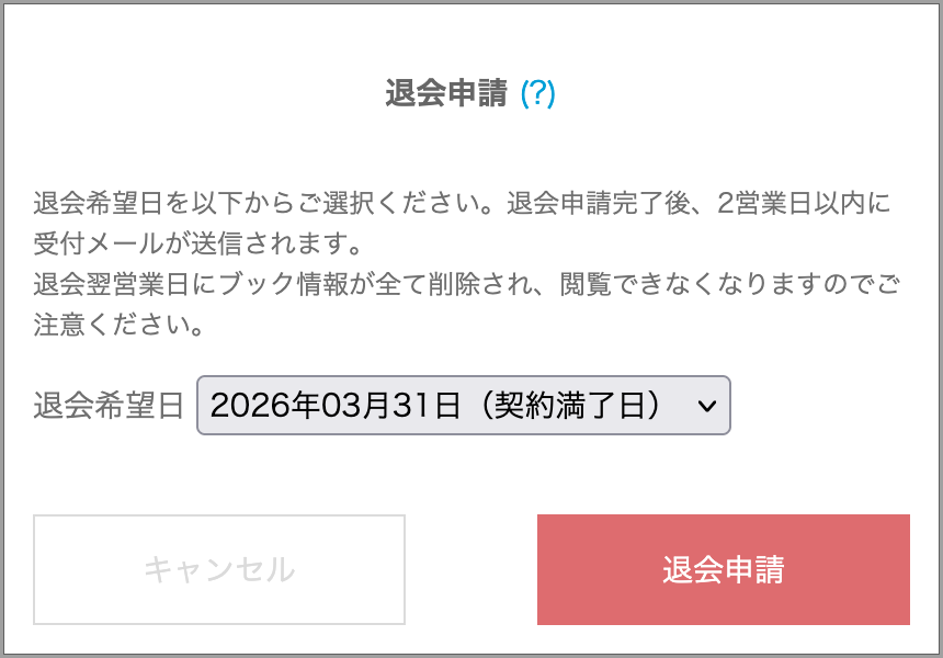 次回の契約更新が4月の場合、3月31日までに退会申請となります。