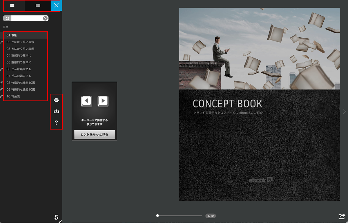 ・上メニューのアイコン(画像の赤枠部分)
