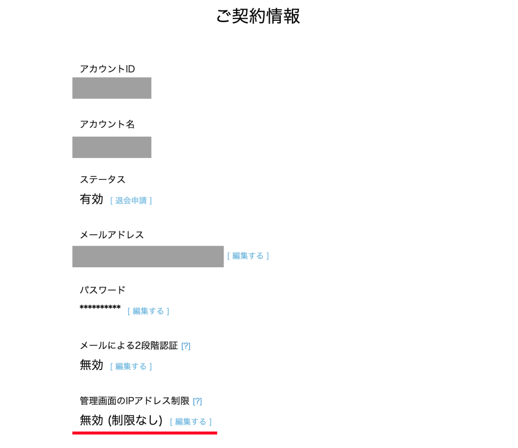 管理画面のIPアドレス制限:無効(制限なし)の場合