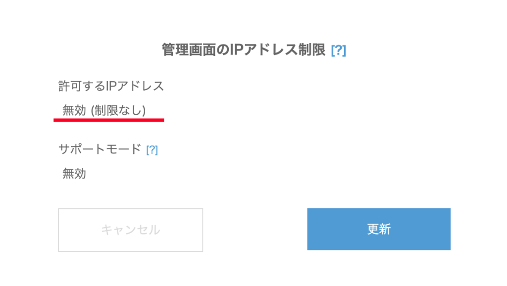 管理画面のIPアドレス制限は、無効(制限なし)になります。