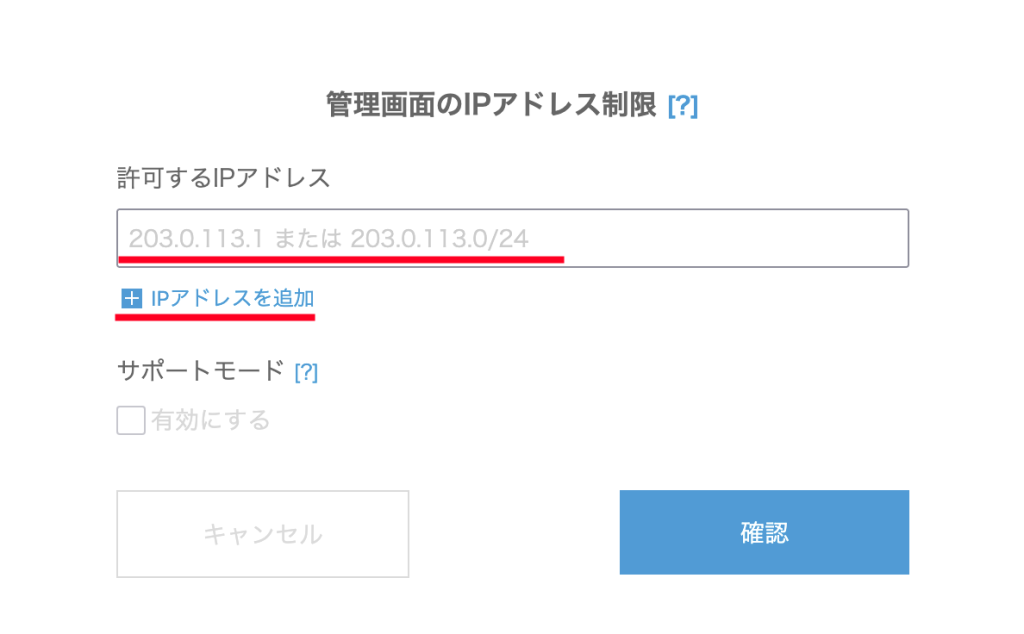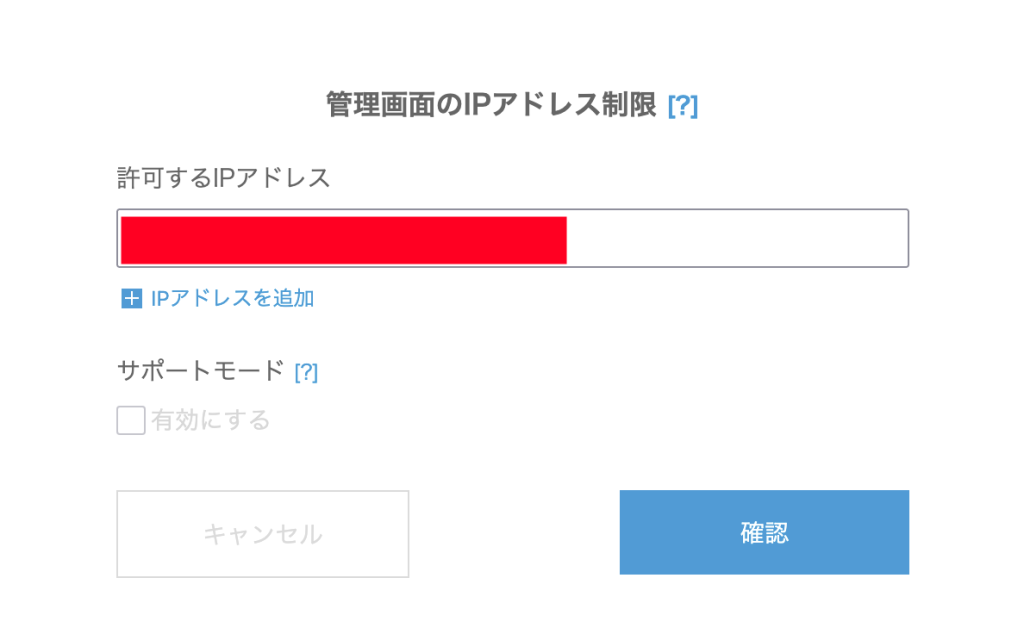 許可するIPアドレスを入力し「確認」をクリックしてください。