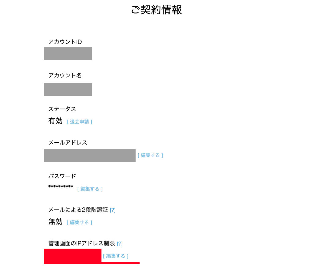 ▼ご契約アカウント(ご契約者様)の場合は、IPアドレス制限の解除をご依頼ください。