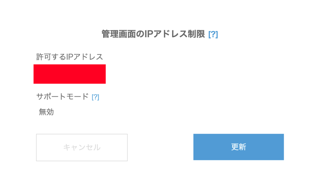 許可するIPアドレスが無効(制限なし)になっていることを確認し「更新」をクリックしてください。