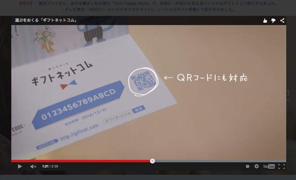 受け取った人は、同社サイトにアクセスして、印刷されたコードを入力すると商品を選べるのですが、スマホでQRコードをスキャンすると、さらに素早くアクセスできます。